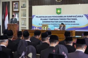 Sumbawa Besar, sumbawakoordinat.com – Jum’at,  1 Agustus 2025  Pemerintah Kabupaten Sumbawa melakukan mutasi perdana tahun 2025 dengan melantik sebanyak 89 pejabat struktural dalam rangka penyegaran birokrasi dan peningkatan kinerja pelayanan publik. Acara pelantikan dipimpin langsung oleh Bupati Sumbawa, Ir. H. Syafruddin Jarot, M.P, di Aula H. Madilaoe ADT Kantor Bupati Sumbawa.